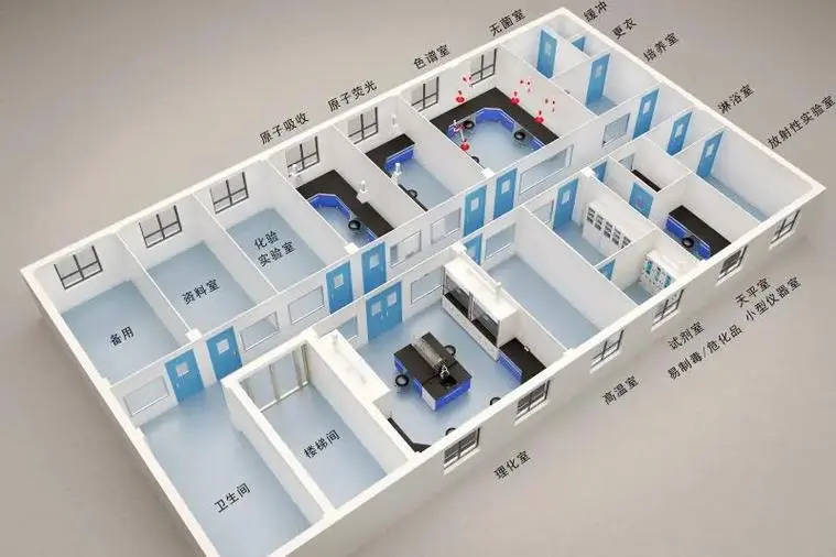 空间布局与功能区域划分:根据实验室的具体功能需求,合理划分实验操作区、仪器设备区、存储区、办公室和休息区等。每个区域应根据其使用特点进行设计,例如实验操作区应宽敞明亮,便于操作和观察;仪器设备区应有足够的电源插座和防震设施;存储区应设有专门的化学品存储柜,避免化学品的混合存放。