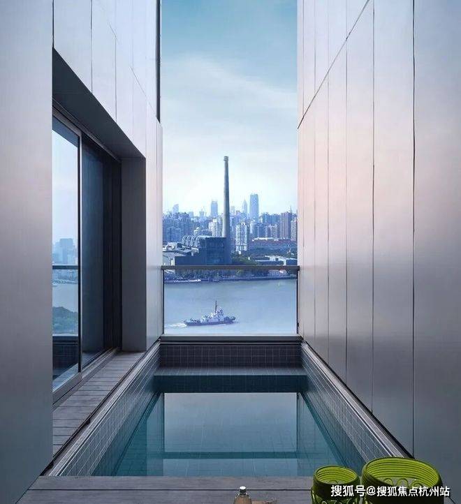 客餐厅还有阳台,可凭栏听江游目骋怀。约252㎡中间套则在13.2米瞰江面基础上,奇数层开创性地增加了约6米的进深采光面,利用中间套的双层挑高,打造上海滨江首个空中泳池户型。我觉得这是一个人生巅峰户型,已不仅仅是业主至高身份的象征了,就是全国楼王。