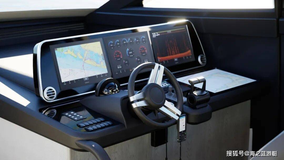 突破性的后置厨房+社交枢纽布局构成了PEARL 73的核心设计亮点。将餐饮准备区域置于主甲板后部,不仅优化了服务流线,更创造了环绕式社交空间。驾驶台区域采用符合人体工程学的多屏幕集成控制系统,并首次在该级别游艇上引入了可选配的侧甲板快速通道。