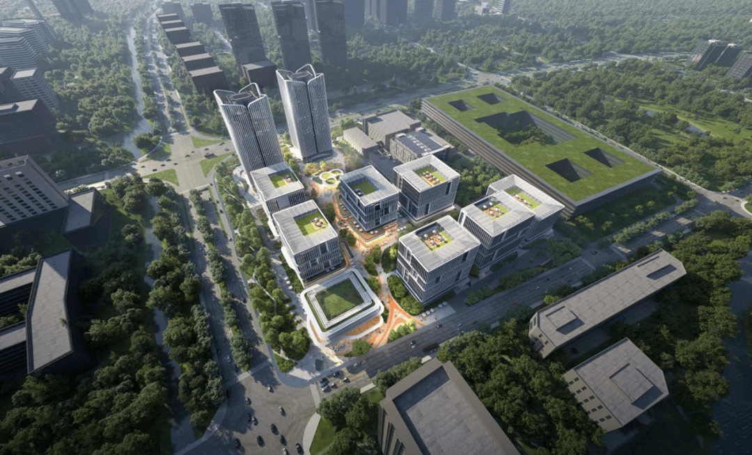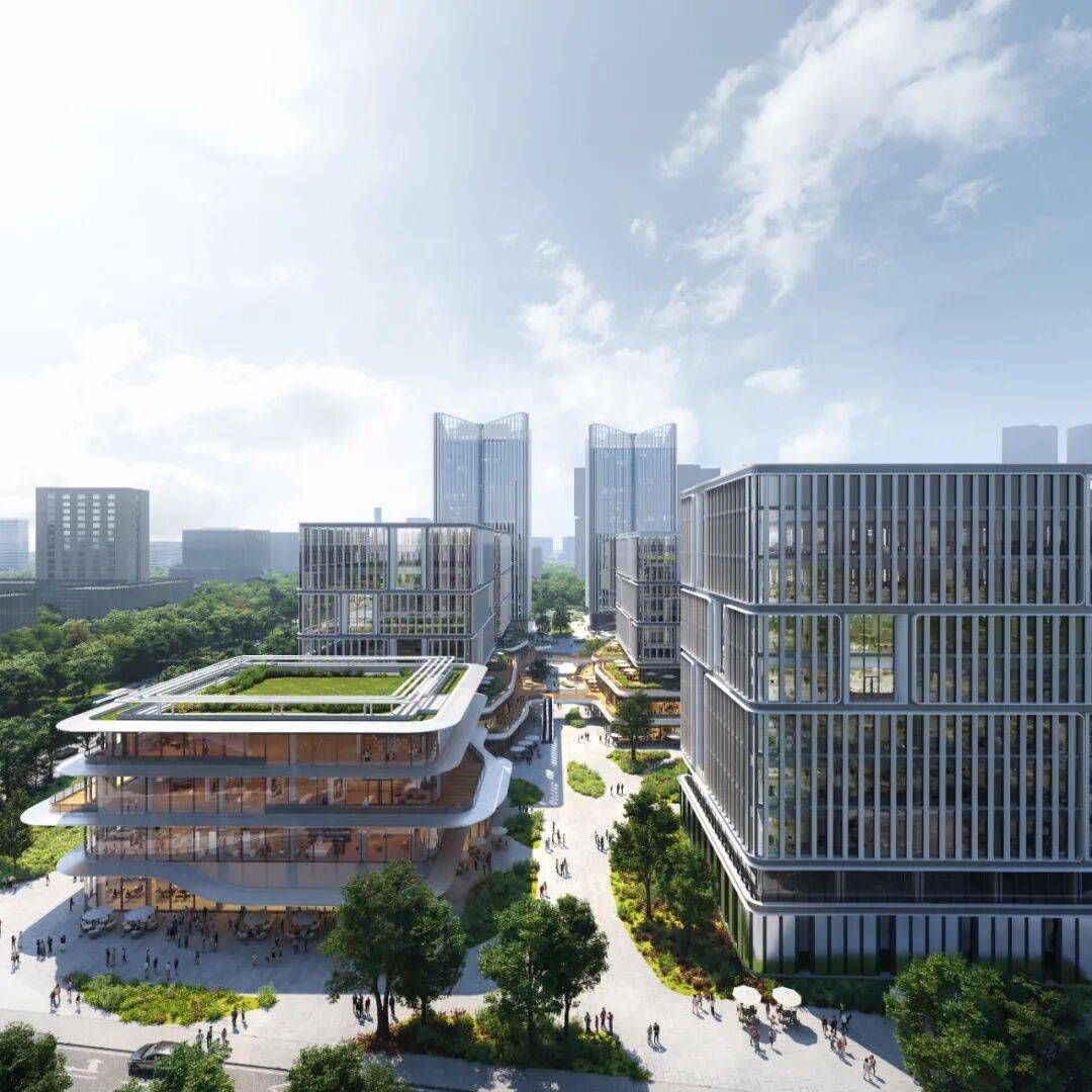 这些街区之间由多层级绿化系统与共享空间贯穿,实现城市界面开放、园区肌理融合。街道不再只是通行的通道,更是人才交互、企业协作的连接介质。